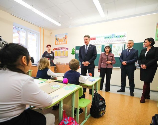 Заместитель Премьер-министра Игорь Петришенко в день старта республиканской новогодней благотворительной акции "Наши дети" посетил Видомлянскую среднюю школу в Каменецком районе и подарил интерактивную доску и сладости.