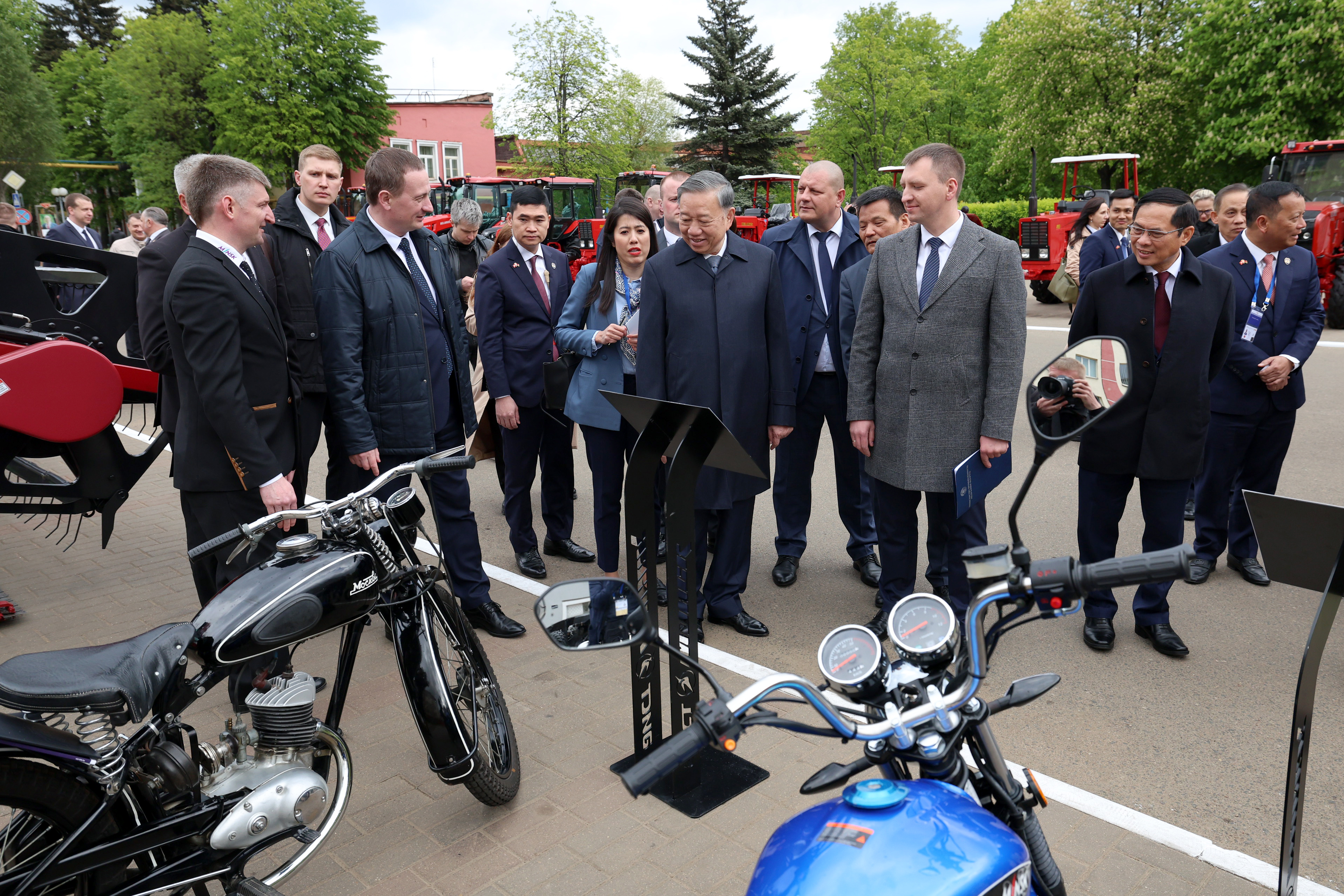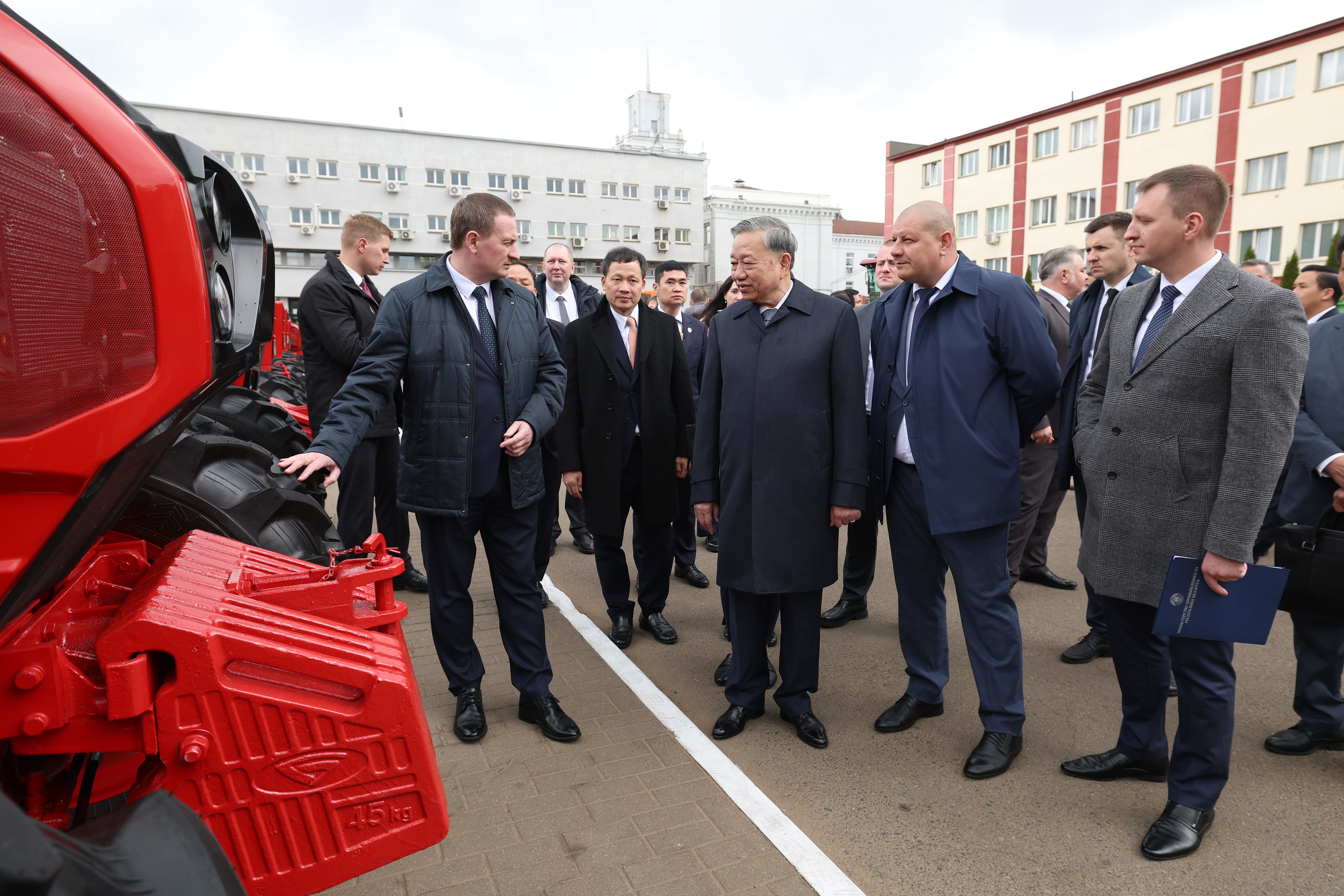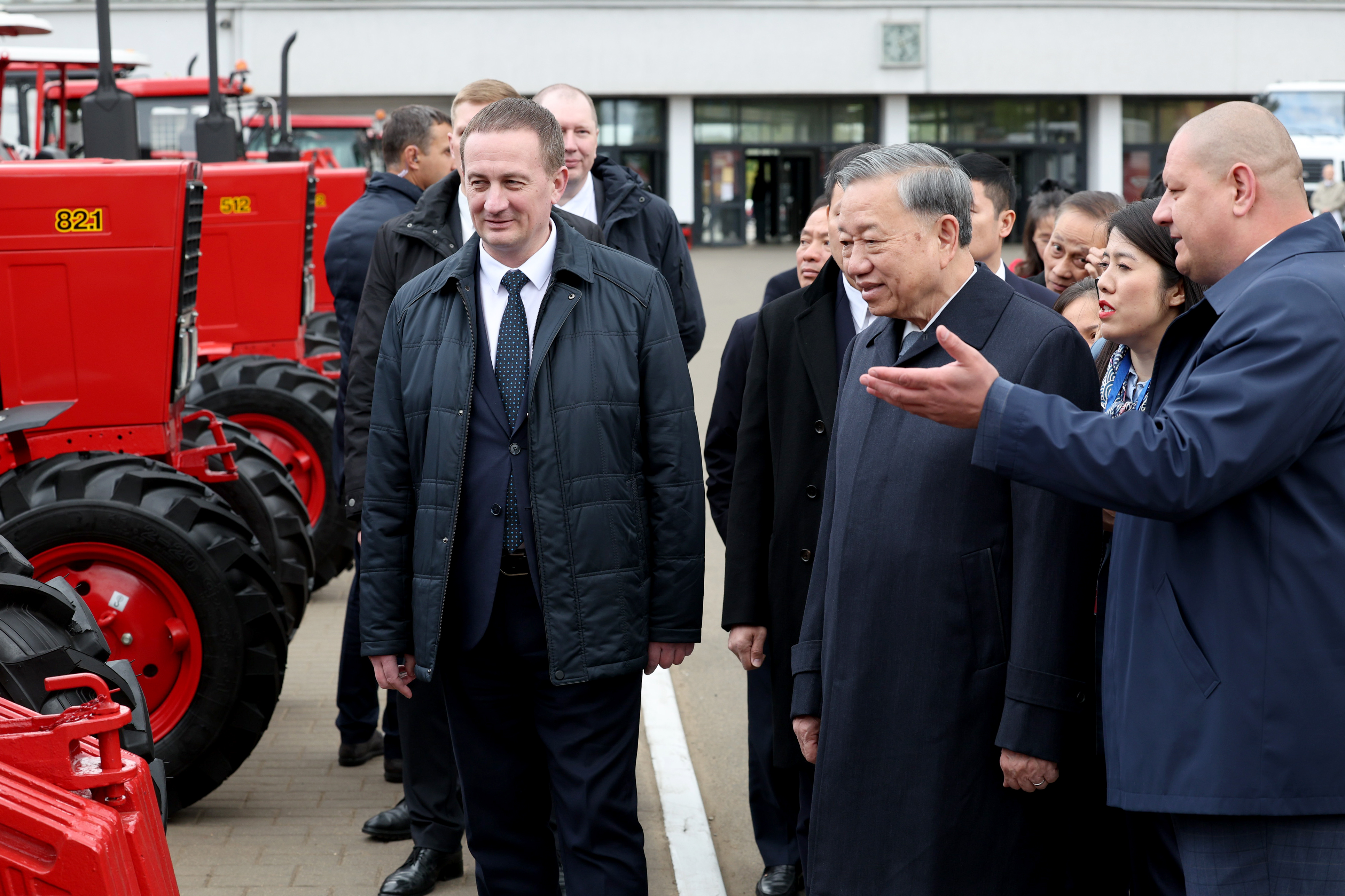 Делегация Вьетнама во главе с Генеральным секретарем Центрального комитета Коммунистической партии Вьетнама То Ламом совместно с Премьер-министром Беларуси Александром Турчиным посетила Минский тракторный завод. Гостям презентовали широкий модельный ряд тракторной техники и не только.