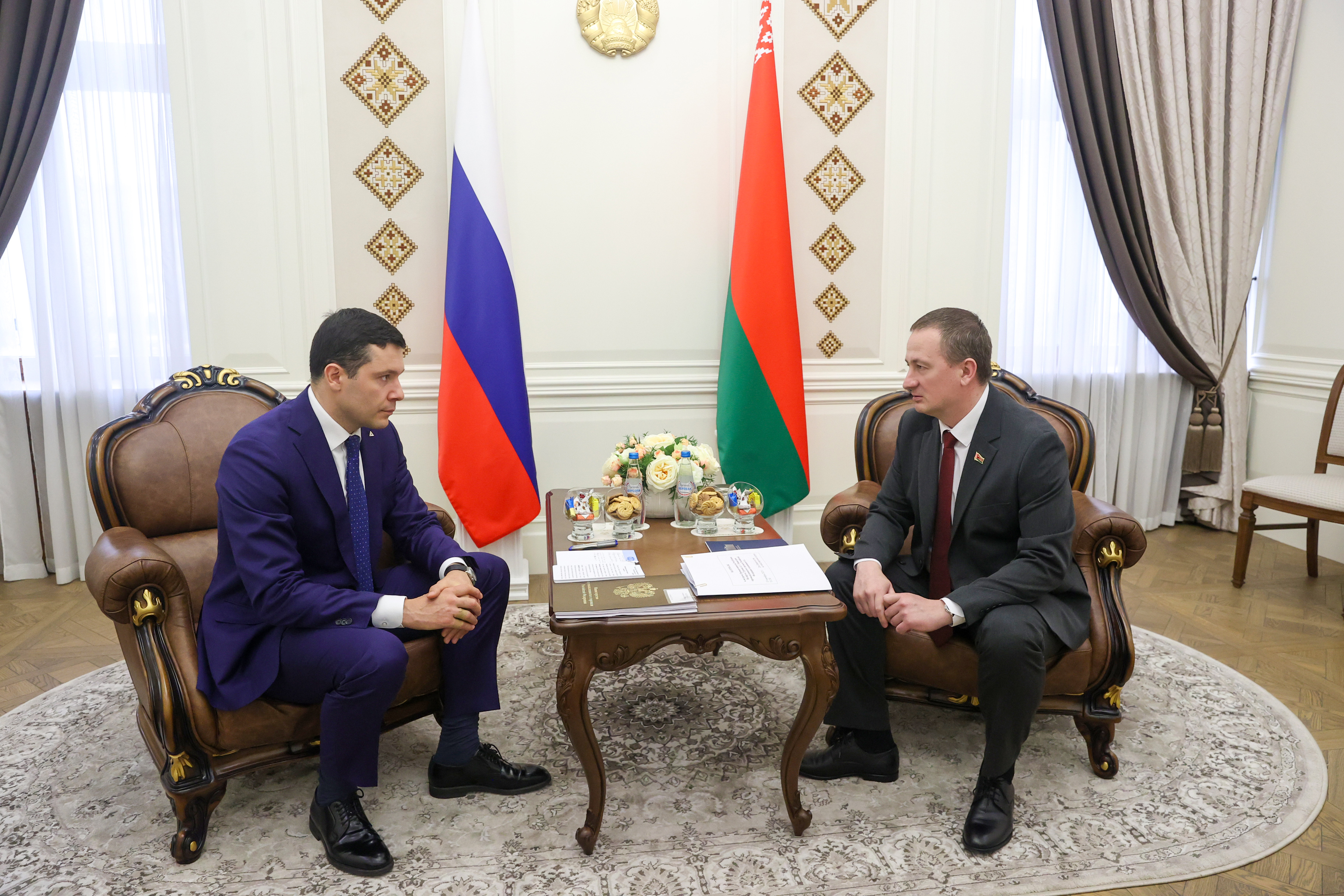 Премьер-министр Беларуси Александр Турчин и министр промышленности и торговли Российской Федерации Антон Алиханов обсудили вопросы промышленной кооперации во время встречи в Минске.